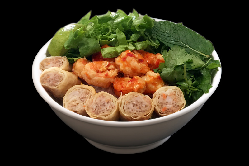 avec nêms au crevettes et vermicelle et salade soja