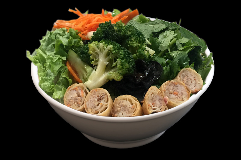nems légumes brocolis sauté nature avec vermicelle et salade soja